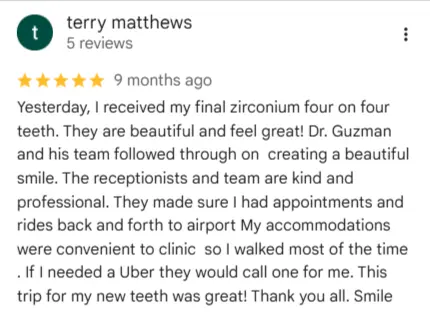 "My son broke a tooth and we found them online. Then my wife was treated there with excellent results and I decided to go too.
